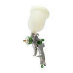 Aerógrafo Pistola ecológica HVLP DISCOVER 600 cc, diseñada para trabajos de precisión y acabado profesional, fabricada con cuerpo en aluminio y vaso en nylon, lo cual la hace mas resistente y ligera al uso, cuenta con perilla de ajuste de rociado, control de fluido y abanico para realizar trabajos rápidos en superficies amplias con acabados profesionales. Gracias a que su vaso se encuentra en la parte superior de la pistola la pintura cae por gravedad evitando desperdicios de pintura y perdidas de presión. Es la herramienta ideal para trabajar detalles en superficies amplias, industria automotriz, ebanistería, marquetería, entre otros. Rendimiento de la pintura 70% se aplica y el 30% se evaporiza. Ideal para aplicar diferentes clases de pintura como, pinturas de aceite , lacas y anticorrosivos. No sirve para pintar con vinilos