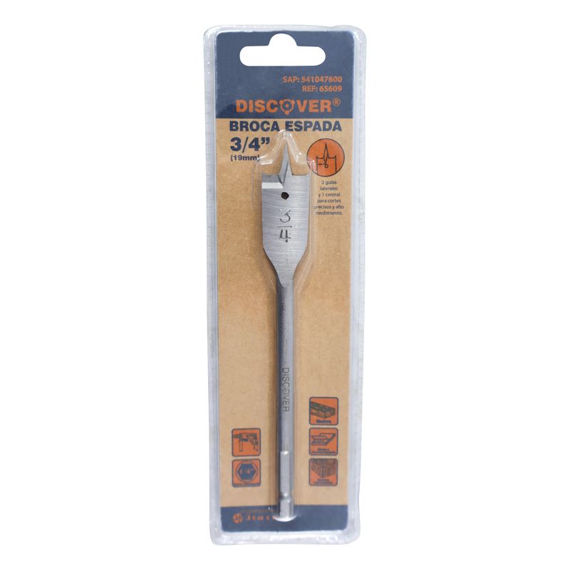 Broca Espada Titanium Discover 3/4" permite perforaciones de mayor diámetro con excelente estabilidad y velocidad. Su recubrimiento Titanium asegura mayor vida útil en trabajos exigentes.