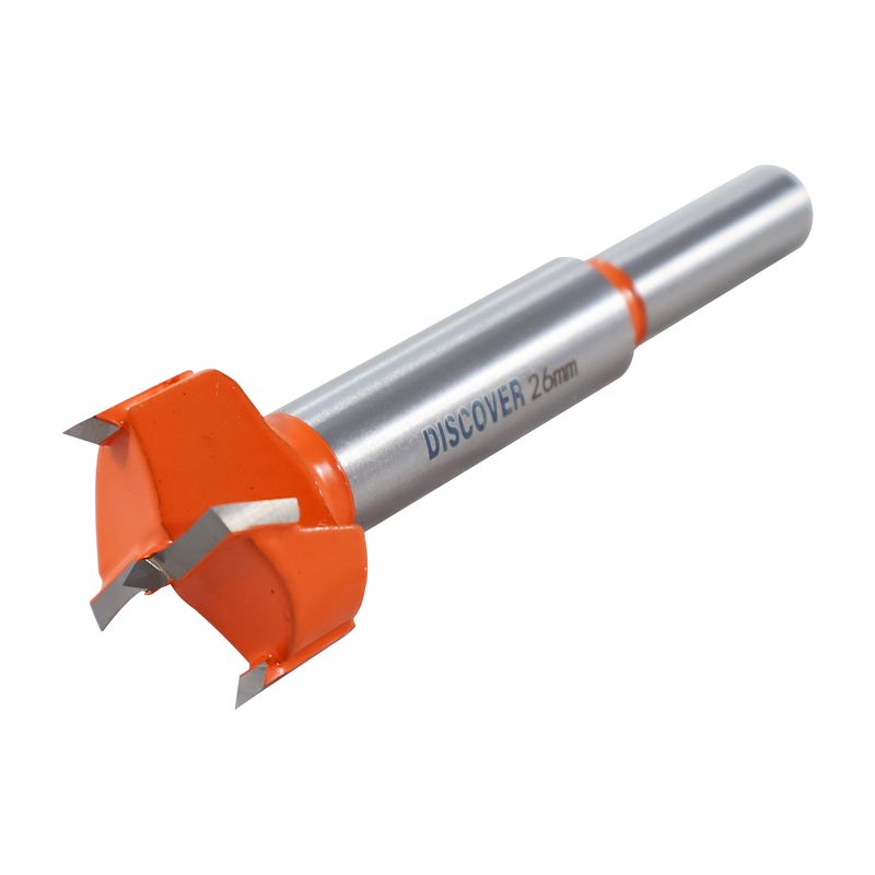 Broca Forstner 26mm Discover está diseñada para perforaciones amplias y precisas en madera, ofreciendo cortes limpios, sin astillas y con fondo plano. Es ideal para instalar herrajes, accesorios y sistemas ocultos en muebles y puertas.