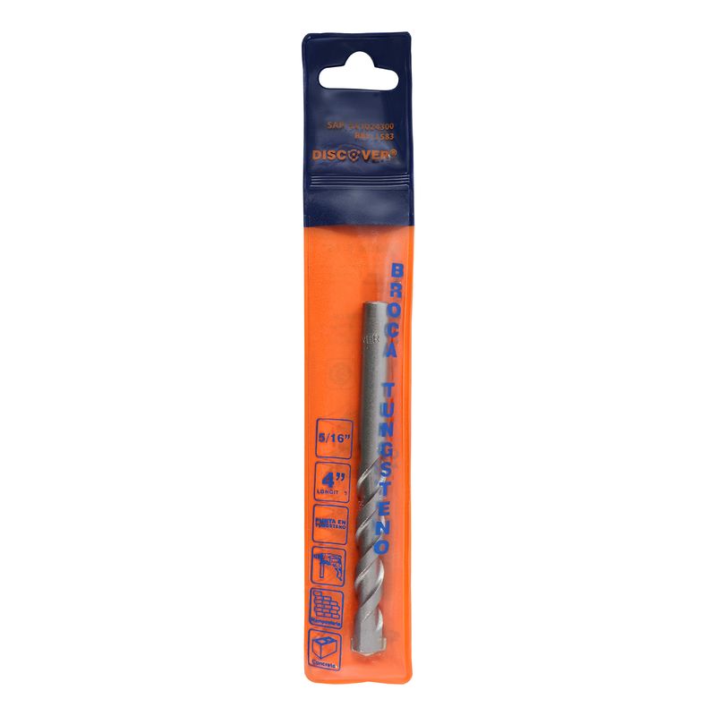 Broca para muro Discover 5/16" x 4" es una broca de trabajo pesado diseñada para perforar concreto, ladrillo y mampostería con alto rendimiento. Su punta en