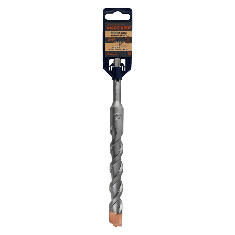 Broca SDS Plus Discover 3/4" x 8" es una herramienta de gran capacidad diseñada para perforaciones de alto diámetro en concreto sólido y mampostería. Su punta de