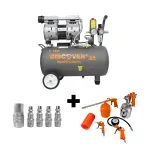 Combo Compresor Silencioso Discover 24L 1HP + Set 5 Pistolas y Acoples combina