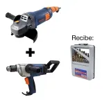 potencia, resistencia y precisión en cada proyecto. Perfecto para talleres, obras y trabajos de alto rendimiento, este combo reúne dos herramientas profesionales y un kit completo de brocas en acero rápido.