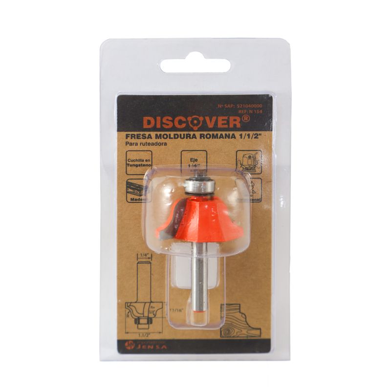 Fresa Moldura Romana Discover 1 1/2" es ideal para crear molduras decorativas de mayor presencia visual en proyectos de carpintería y ebanistería profesional.