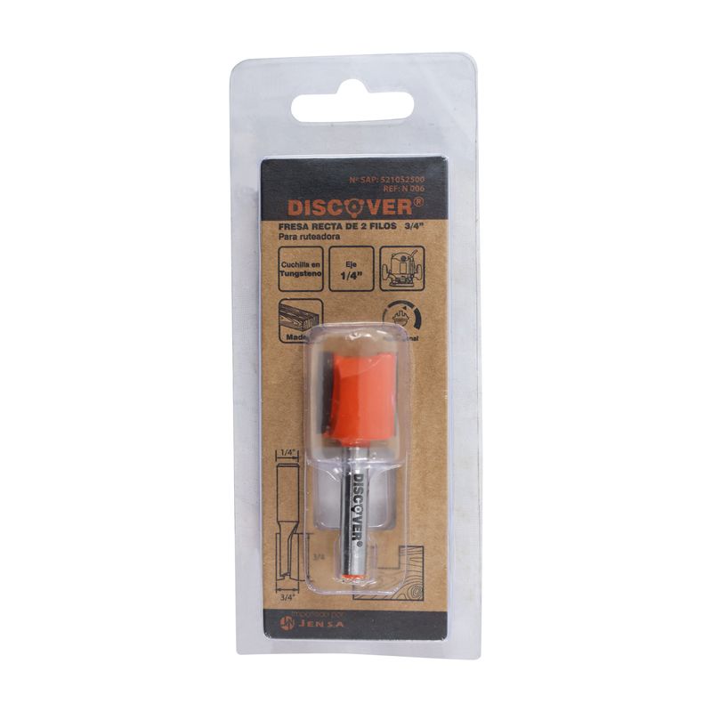 Fresa Recta 2 Filos DISCOVER 3/4" está diseñada para trabajos de carpintería que requieren cortes anchos y precisos.