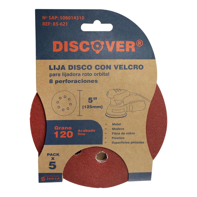 La Lija Disco Velcro Discover 5” grano 120 es ideal para acabados finos en madera, metal y plásticos. Su abrasivo de alta calidad ofrece un lijado uniforme y controlado, ideal para etapas previas al pintado o barnizado.