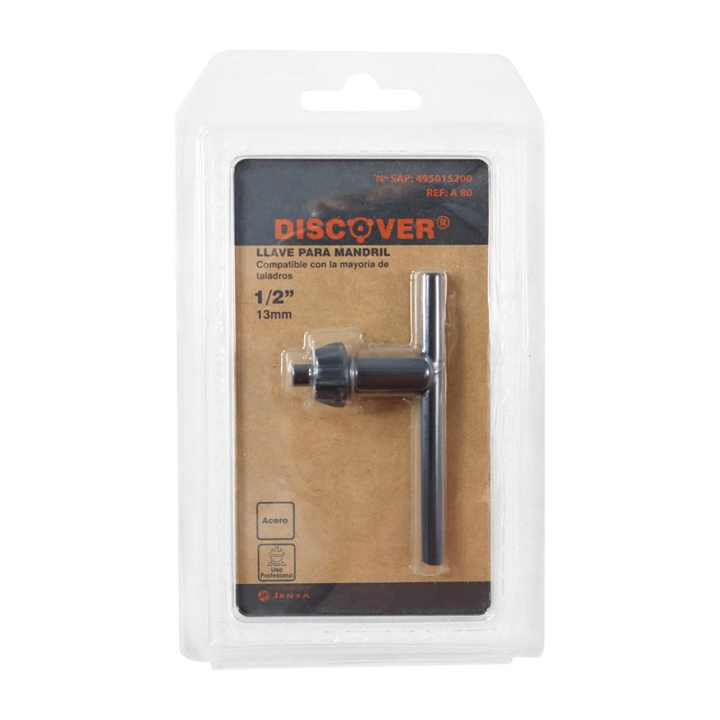 Llave para mandril Tipo A Discover 1/2", diseñada para ofrecer un ajuste confiable en mandriles de mayor capacidad.