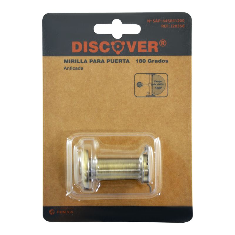Ojo mágico anticado DISCOVER. Es un dispositivo diseñado para poder ver al otro lado de la puerta, sin necesidad de abrirla. Es un dispositivo que actúa como elemento de prevención y seguridad y evitar robos al poder ver quien se encuentra al otro lado de la puerta. Es un dispositivo muy usado en apartamentos o hogares que cuentan con limitada visión al exterior. Fabricado con materiales alta calidad para una mayor vida útil.