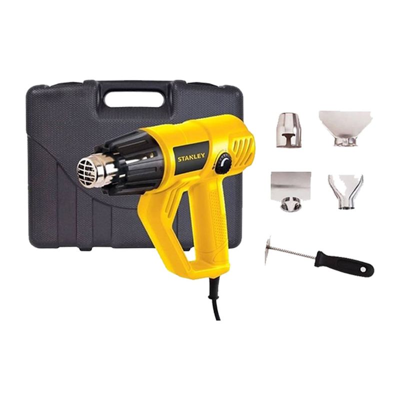 Pistola de calor STANLEY, con potencia de 1800W con boquilla esférica, control de temperatura variable 50 – 450°C/90 – 600°C. e interruptor con dos niveles de flujo de aire. Su motor de 1,800 Watts le otorga para poder responder a las aplicaciones del profesional. Ajuste de flujo y temperatura variables para mayor versatilidad y aplicaciones y efectividad. Superficie trasera plana para apoyar, mayor comodidad y trabajo con las manos libres. Mango texturizado y cerrado para mayor seguridad y agarre durante el uso. Versión K incluye estuche plástico y 5 accesorios, ofrece mayor versatilidad de aplicaciones y comodidad en el trasporte