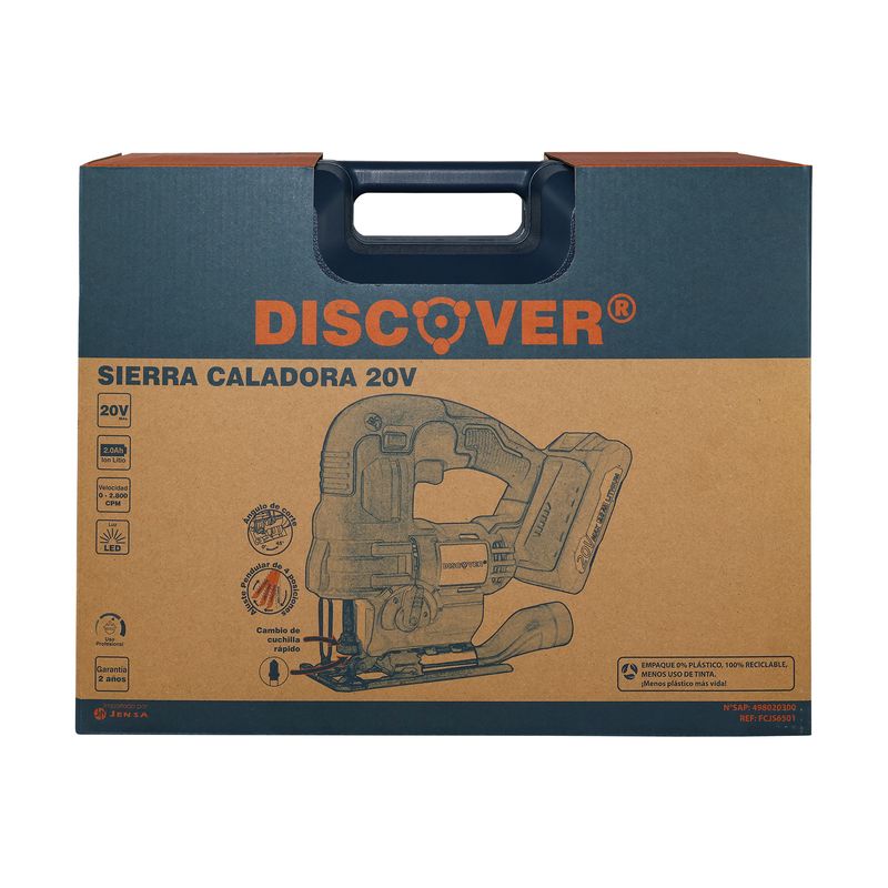 Sierra Caladora Discover 20V es una herramienta inalámbrica diseñada para realizar cortes precisos en madera, metal y plásticos, ideal para carpintería, instalación, obra y mantenimiento.